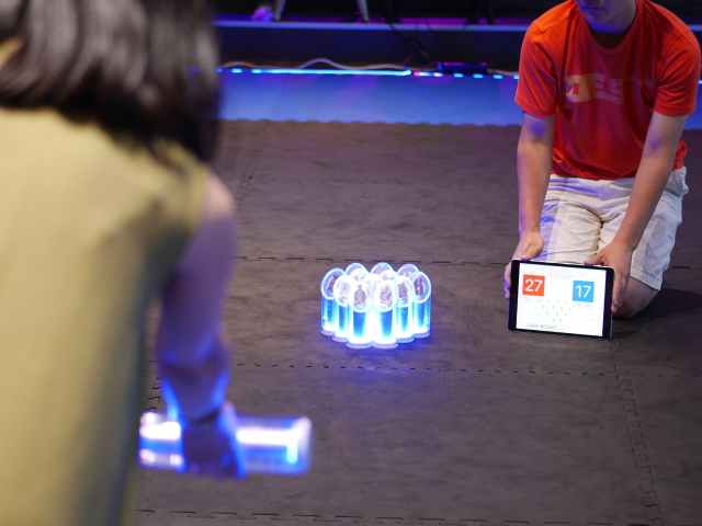 倒れたピンが光る♪ ワクワクいっぱいの体験!