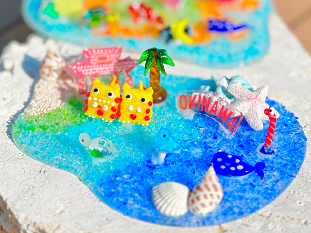 琉球ガラスのカケラや可愛いミニチュアを使って、トロピカルなカラフルプレートを作ろう!