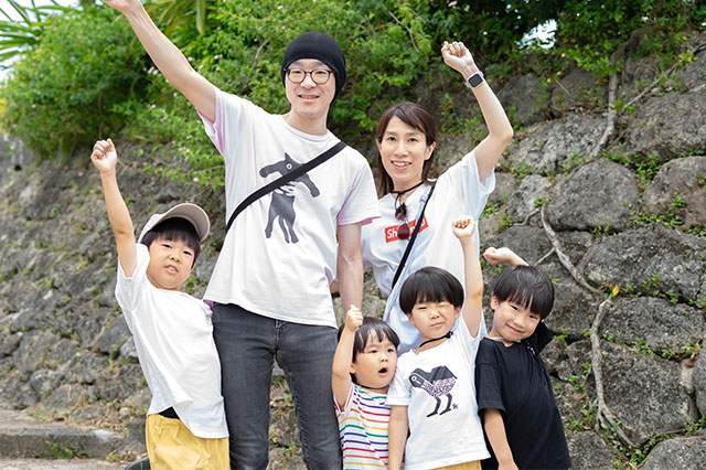 今回ボルダリングを体験する仲村さんファミリー。パパママも、3歳~7歳の四兄弟もボルダリング初チャレンジで、気合い十分です。