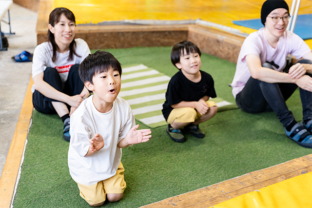 順番を待つ間、頑張る仲間を応援するのも大切なこと。失敗しても仲間同士で励まし合い、諦めずにトライする向上心や、コミュニケーション力がスポーツを通して身に付きます。