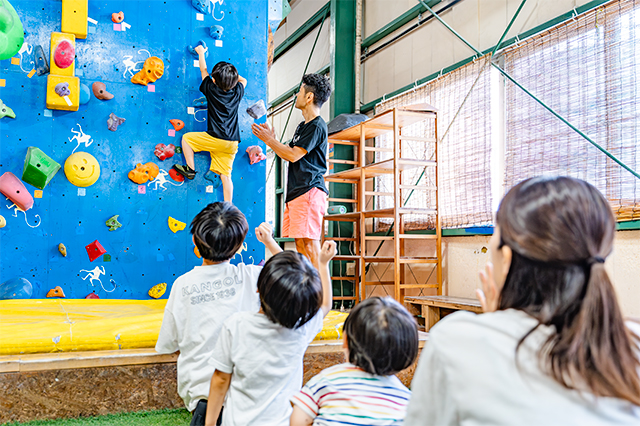 運動能力以外にも、“集中力”と“先を読む力”が身に付くのも大きな魅力。 「どこをつかんだら先に進めるかな」「次はどこに足を置こう」など、夢中で登っているだけで自然と思考力が養われます。