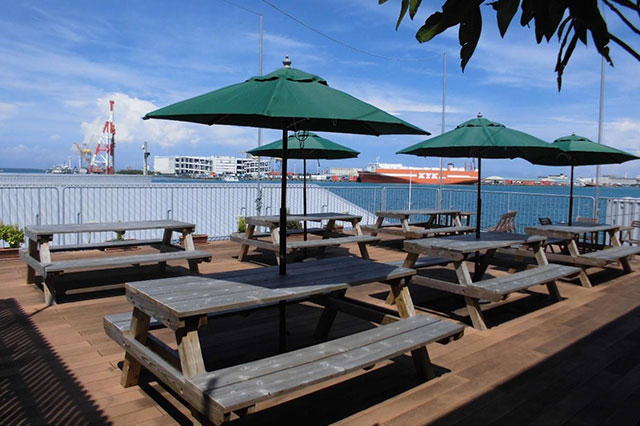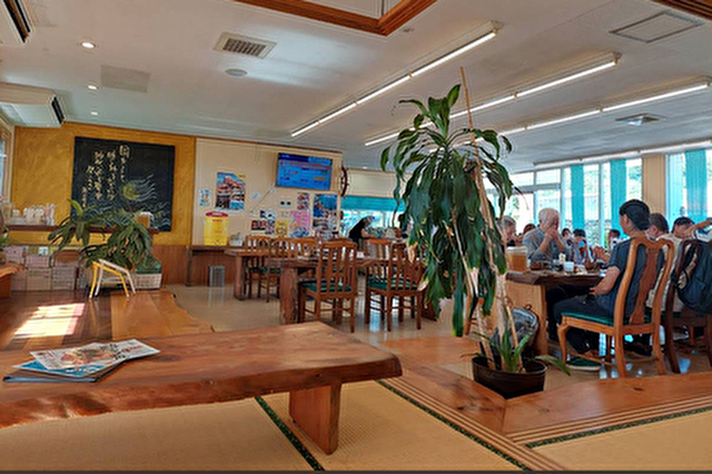 泊漁港で水揚げされたばかりの「なはまぐろ」をはじめ、鮮度抜群の海鮮がそろいます。なんといっても購入した魚介をその場で味わえるのが大きな魅力。特に2階のテラス席は、青い海を眺めながら食事ができるおすすめスポットです。