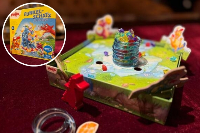 筒状に積み上げた透明リングを上から1つずつ外していき、こぼれ落ちる宝石の色を予測してなるべく多くの宝石獲得を狙うゲーム。どの色の宝石が落ちてくるか、他のプレイヤーと駆け引きしながら、リングの中の状態をよく観察して狙いを定めるのが勝利のカギを握ります。