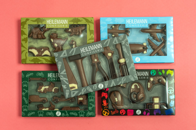 ドイツの老舗チョコレートブランド「ハイレマン コンフィズリー」のチョコレートフィギュア。 ダイナソーに車や飛行機、ゲーム、ツールなど、子ども心をくすぐるシリーズが揃っています。ホワイト&ダークチョコレートで装飾された、なめらかな口どけのミルクチョコレートは、見た目だけでなく味わいも本格派。