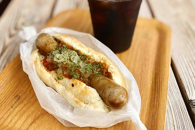 沖縄県産豚肉を使った手づくりソーセージを、注文を受けてから焼き上げるホットドッグはあふれる肉汁がたまらない逸品。店内のショーケースにはチーズ入りやチョリソーなど多彩な商品が並び、お持ち帰りにもぴったりな真空パックも購入できます。