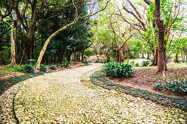 <仁然さん>道は石敷きで凹凸があるため、識名園を訪れる際、ヒールは避けてくださいね。