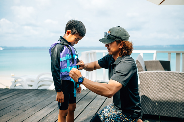 スタッフさんが一人ひとりライフジャケットのベルトを締めながら丁寧に案内してくれるので、マリンスポーツに慣れていなくても安心して楽しめます。