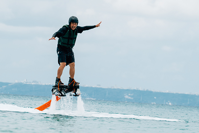 けいたりん さん「海の上を飛んでいるみたいで気持ちよかった~!何回も失敗したけれど、スタッフさんがアドバイスしてくれたおかげで、後半は感覚がつかめてきました。飛べたときの達成感はヤバかったです。最後、空の上から大きい青い魚が見えたけど、あれはイラブチャーだったかな?!」