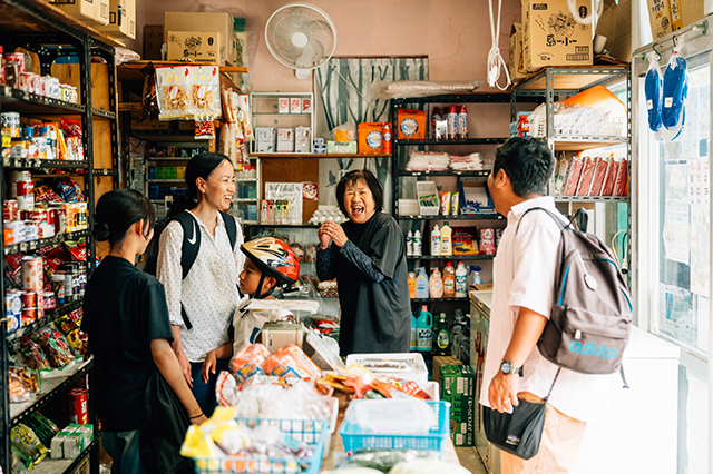キャロタクで向かったのは、島の商店「あずま商店」。明るく気さくな店主・東さんとのユンタクも楽しいひと時です。