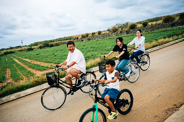 人気お笑い芸人・プロパン7の「けいたりん」さん一家が訪れたのは、沖縄本島から一番近い離島・津堅島(つけんじま)。自転車でも一周できる小さな島で、海遊びを楽しみながら、自然に囲まれのんびりとした風景を満喫しました。