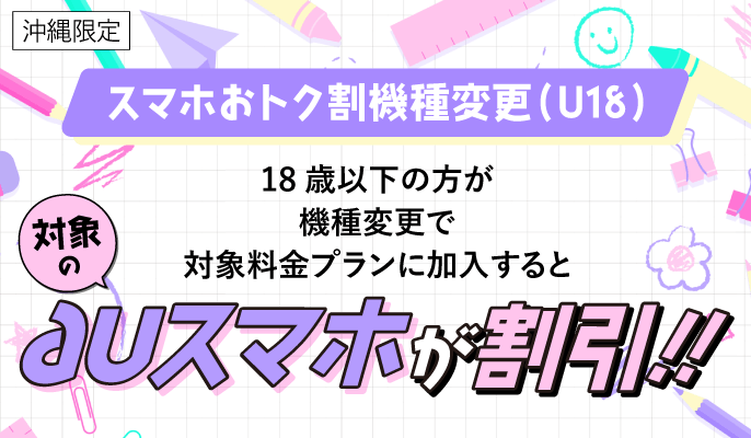 - 沖縄県下au取扱店でのご購入が対象になります。 au Online Shopでのご購入は対象外です。